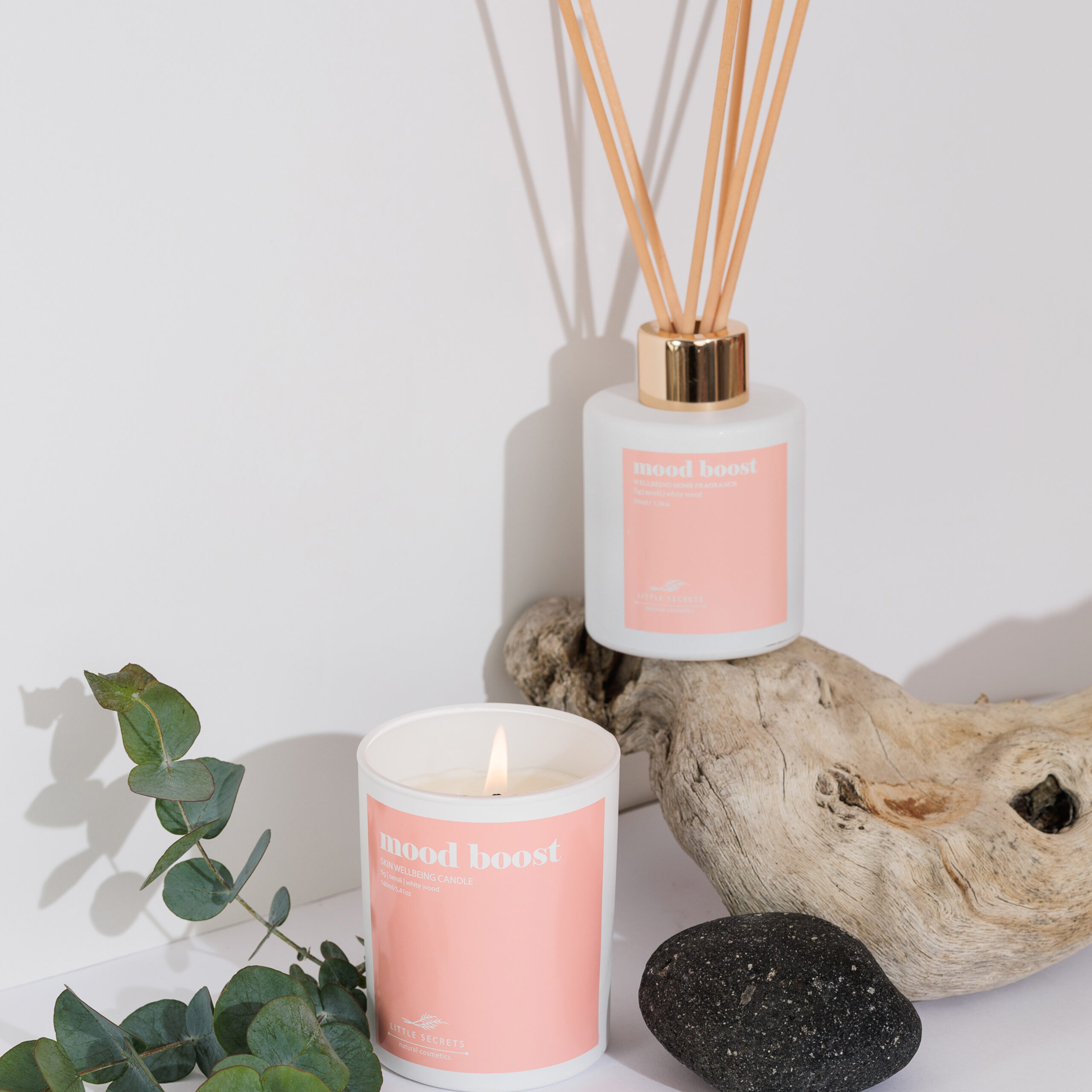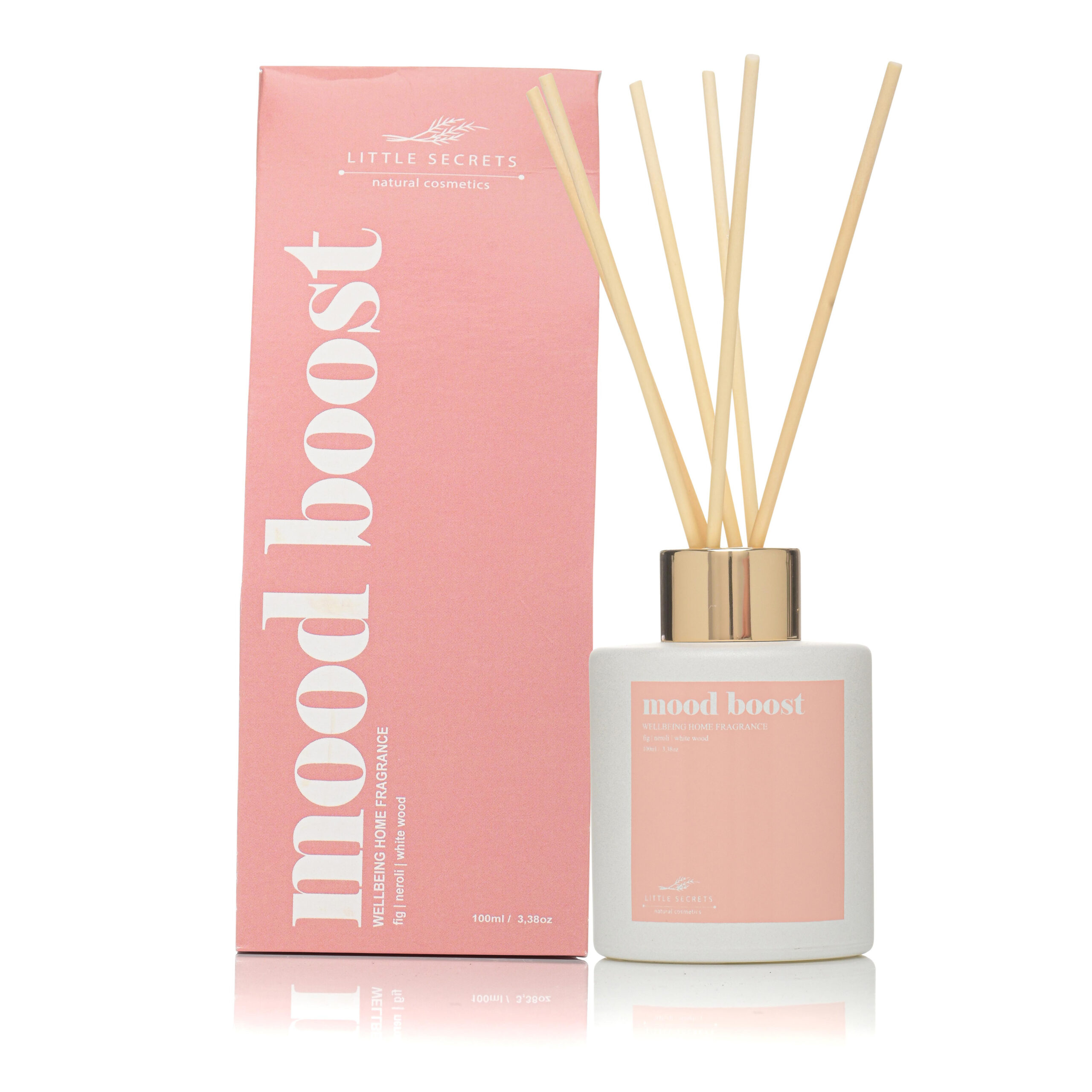 Το Mood Boost Home Diffuser της Little Secrets είναι ένας φιλικός προς το περιβάλλον αρωματιστής χώρου, με νότες σύκου, νερολί και λευκού ξύλου, σχεδιασμένος για να ενισχύει τη διάθεση, να προσφέρει τόνωση και αίσθηση ευεξίας στον χώρο σας.