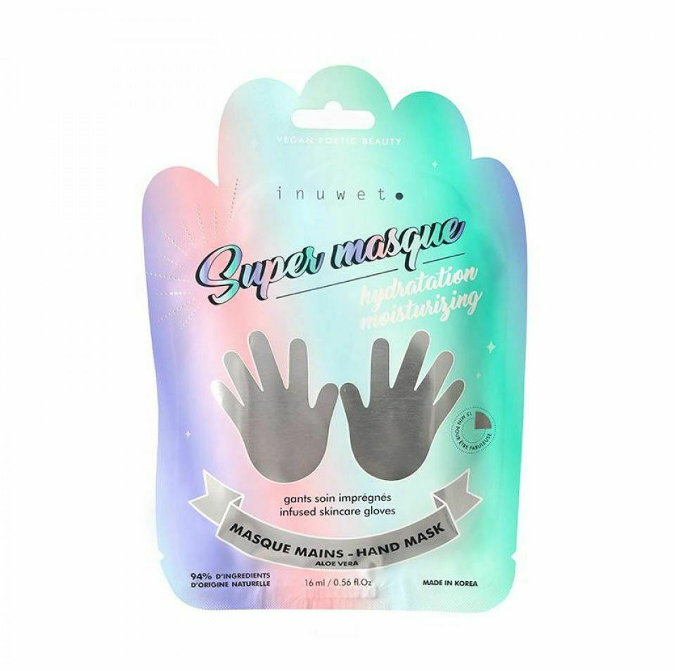 Η Μάσκα Ενυδάτωσης σε Μορφή Γαντιού από την εταιρεία Inuwet αποτελεί μια πραγματική θεραπεία SPA για τα χέρια που μπορεί εύκολα να πραγματοποιηθεί στο σπίτι. Είναι γενναιόδωρα εμποτισμένη σε διάλυμα το οποίο αποτελείται κατά 94% από ενεργά φυτικά συστατικά. Ανάμεσά τους, ο χυμός αλόης βέρα, ένας ισχυρός φυσικός ενυδατικός παράγοντας, καταπραΰνει απαλά τους ερεθισμούς, διεγείρει τη διαδικασία επούλωσης μικρών βλαβών και διαθέτει αποτελεσματικές μαλακτικές ιδιότητες. Το προϊόν είναι πολύ βολικό στη χρήση χάρη στην παγκόσμια διάσταση του γαντιού.